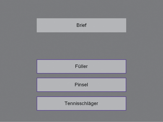 Semantik von abgebildeten Gegenständen in einer Umschreibung finden bei vier Ablenkern.