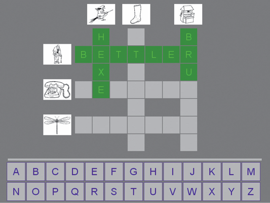 Kreuzworträtsel, bei dem Abbildungen zu benennen sind.