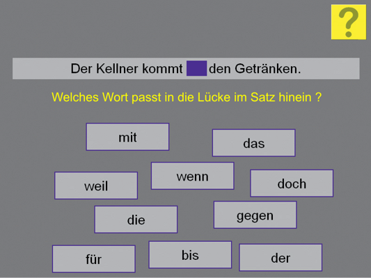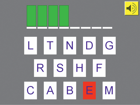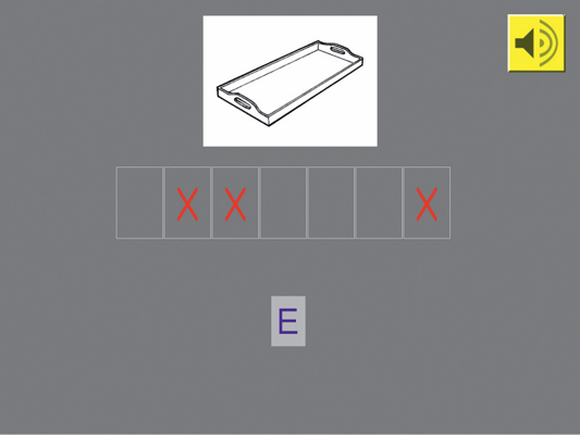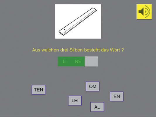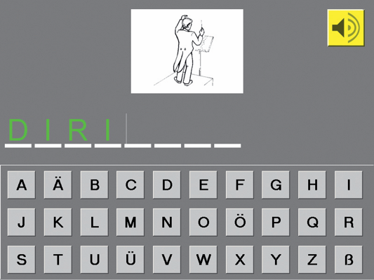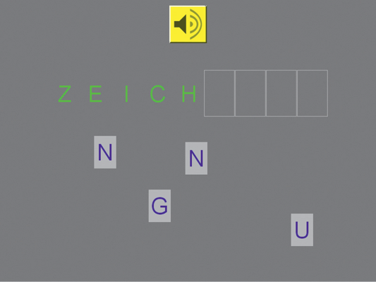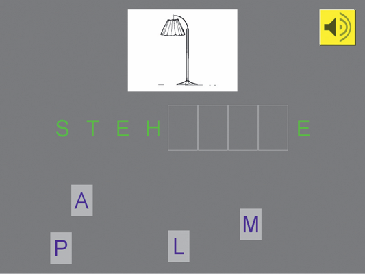 Finden der Position und Einsetzen eines Zielgraphems in seine Position im Wort bei visuellem Stimulus (Abbildung).