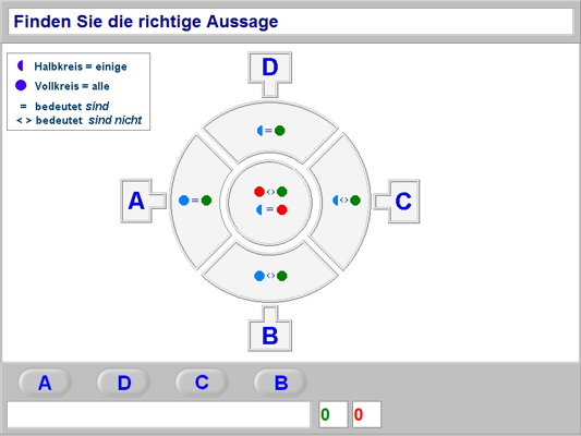 Die Aufgabe ist relativ schwer, da die Aussagen sehr abstrakt sind („einige Blau sind nicht Grün“).