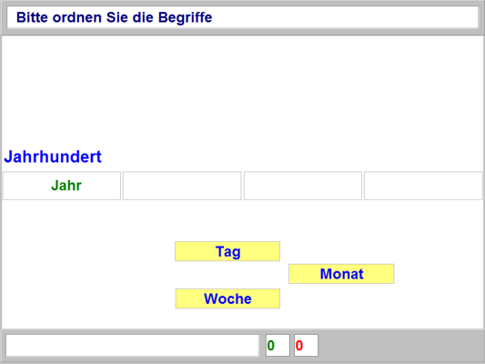 Die jeweiligen semantischen Relationenen sind zu finden und die Begriffe in eine logische Abfolge zu bringen.