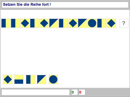 Verschiedene Reihen sind nach bestimmten Gesetzmäßigkeiten aufgebaut. Diese Gesetzmäßigkeit muss erkannt werden, um die Reihe fortzusetzen.