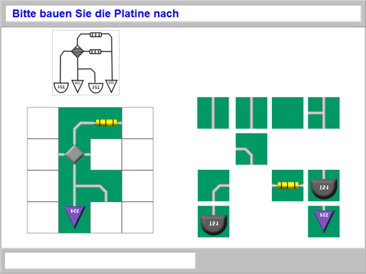 Eine Platine, deren Aufbau nur in Form eines skizzierten Schaltplans vorliegt, soll anhand einzelner Bestandteilen aufgebaut werden.