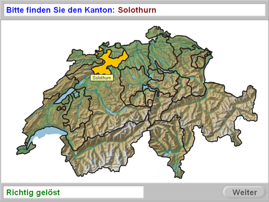 Bei jedem Aufgabendurchgang wird nach einem Kanton gefragt, der auf der Karte gefunden werden soll.