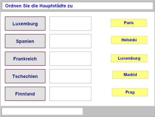 In jedem Aufgabendurchgang werden fünf Länder und fünf Hauptstädte der Europäischen Union angezeigt.
