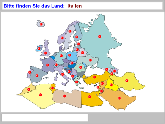 Die Länder der Europäischen Union sollen auf einer Landkarte gefunden und angezeigt werden.