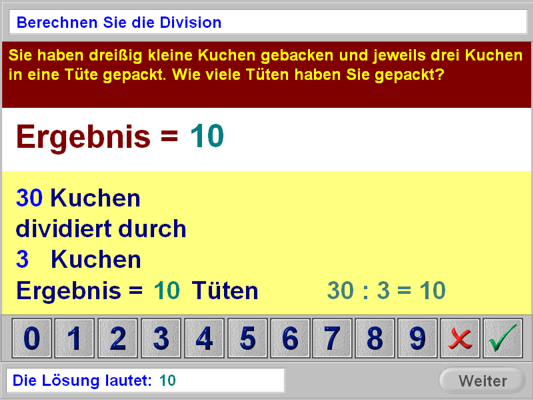 Zugleich wird der Zusammenhang zwischen Multiplikation und Division (Umkehrbarkeit) und das Dividieren größerer Zahlen dargestellt.