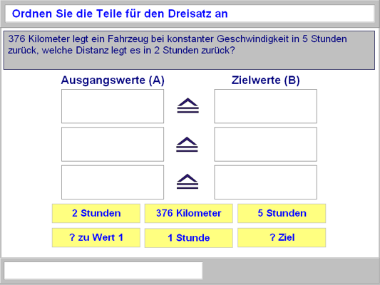 Daher sollen zuerst die einzelnen Komponenten der Dreisatzaufgaben korrekt in einer Tabelle angeordnet werden.