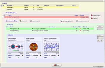 Die Therapieplanung ermöglicht die individuelle Zusammenstellung beliebiger Aufgaben aus verschiedenen Therapiemodulen zu einer Patientensitzung. Die so zusammengestellte Planung wird im Netzwerk oder auf einem Speichermedium (z.B. USB- Stick) abgelegt und ermöglicht den automatischen Ablauf der Patientensitzung auf einer Patientenstation.